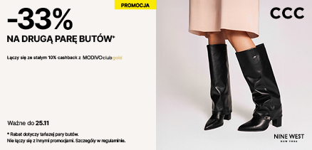 W CCC więcej znaczy taniej! Wybierz dwie pary butów, a za tańszą zapłać 33% mniej! Botki, kozaki, sneakersy i szpilki od znanych marek – wszystko w super cenach, także modele nieprzecenione!…
