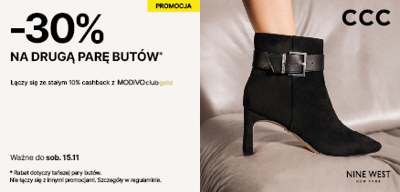 Sneakersy, mokasyny, sztyblety czy kozaki! Nie wybieraj – weź dwie pary! W CCC druga tańsza para butów 30% taniej! Stylowe modele znanych marek dla całej rodziny czekają na Ciebie.…