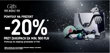 -20%* przy zakupach za min. 500 PLN. *Promocja nie obejmuje produktów 4F PRO.